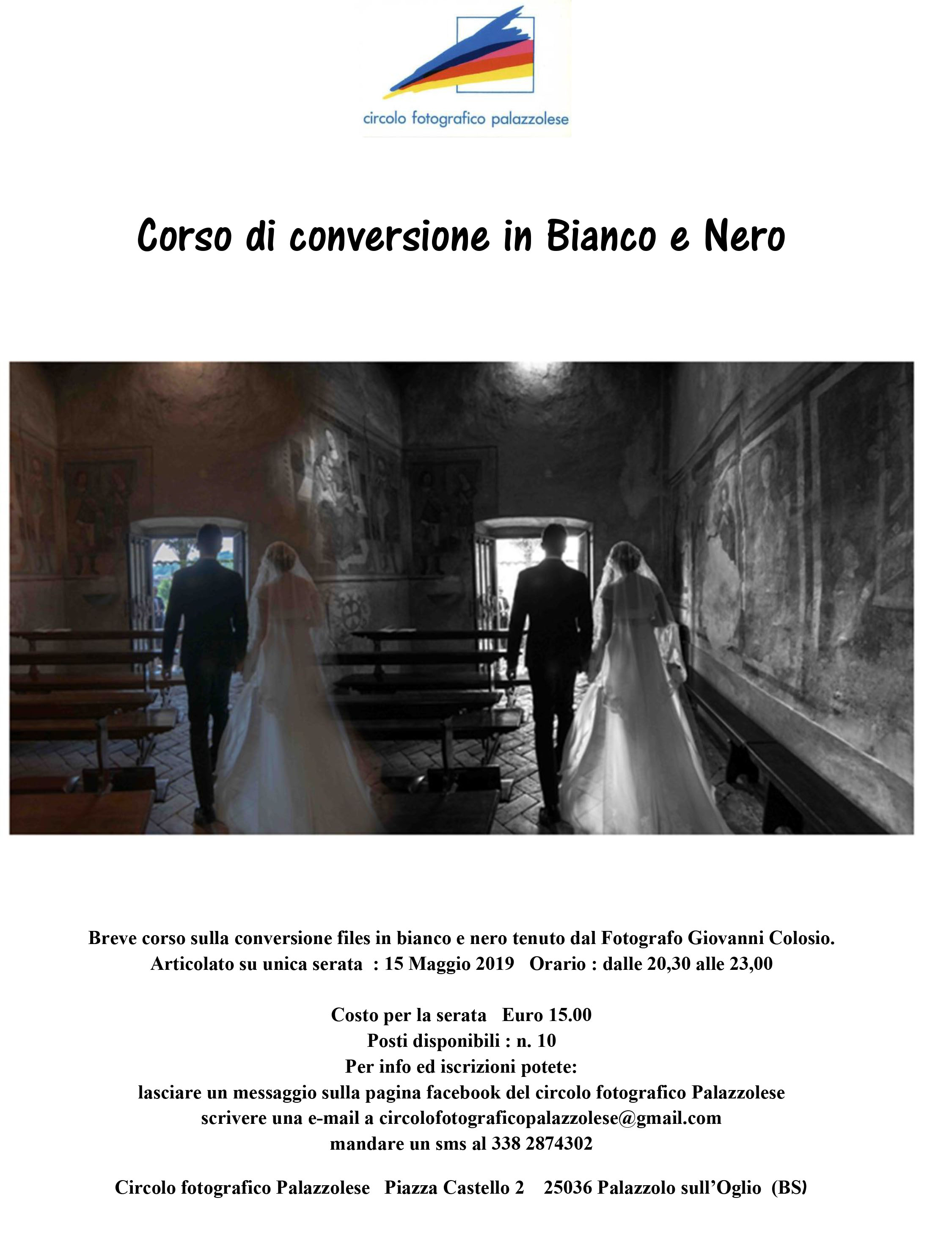 Il Circolo fotografico palazzolese organizza un corso dedicato alla conversione in BN che si svolgerà in unica serata il 15 Maggio dalle 20:30 alle 23:00