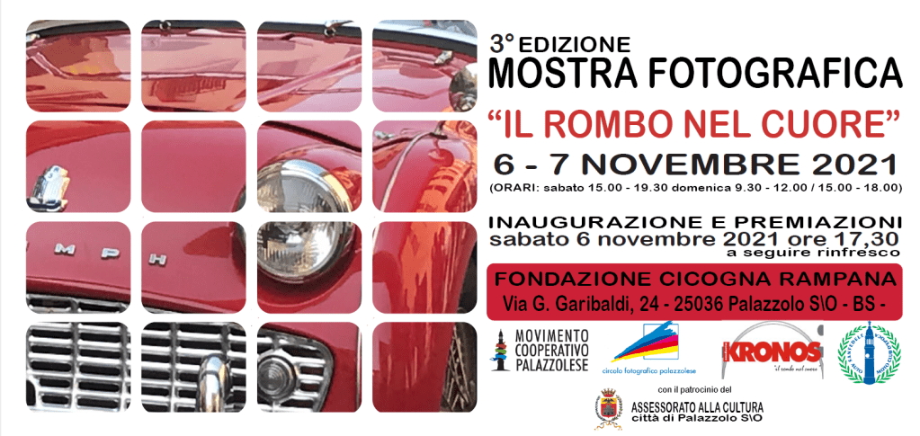 Vi aspettiamo Sabato 6 novembre 2021 all’inaugurazione della mostra fotografica “Il Rombo nel Cuore” alla sua terza edizione presso la Fondazione Cicogna Rampana a Palazzolo S/O.