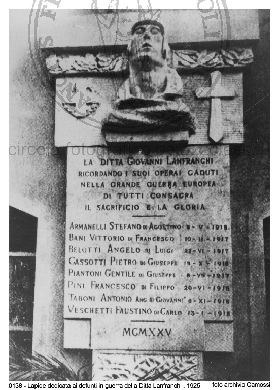 Lapide dedicata ai defunti in guerra della ditta Lanfranchi