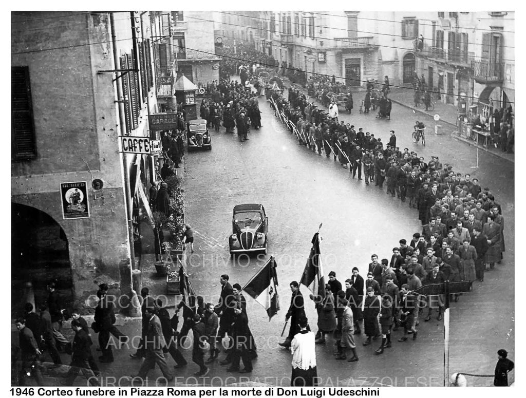 Corteo funebre in piazza Roma per la morte di Don Luigi Udeschini